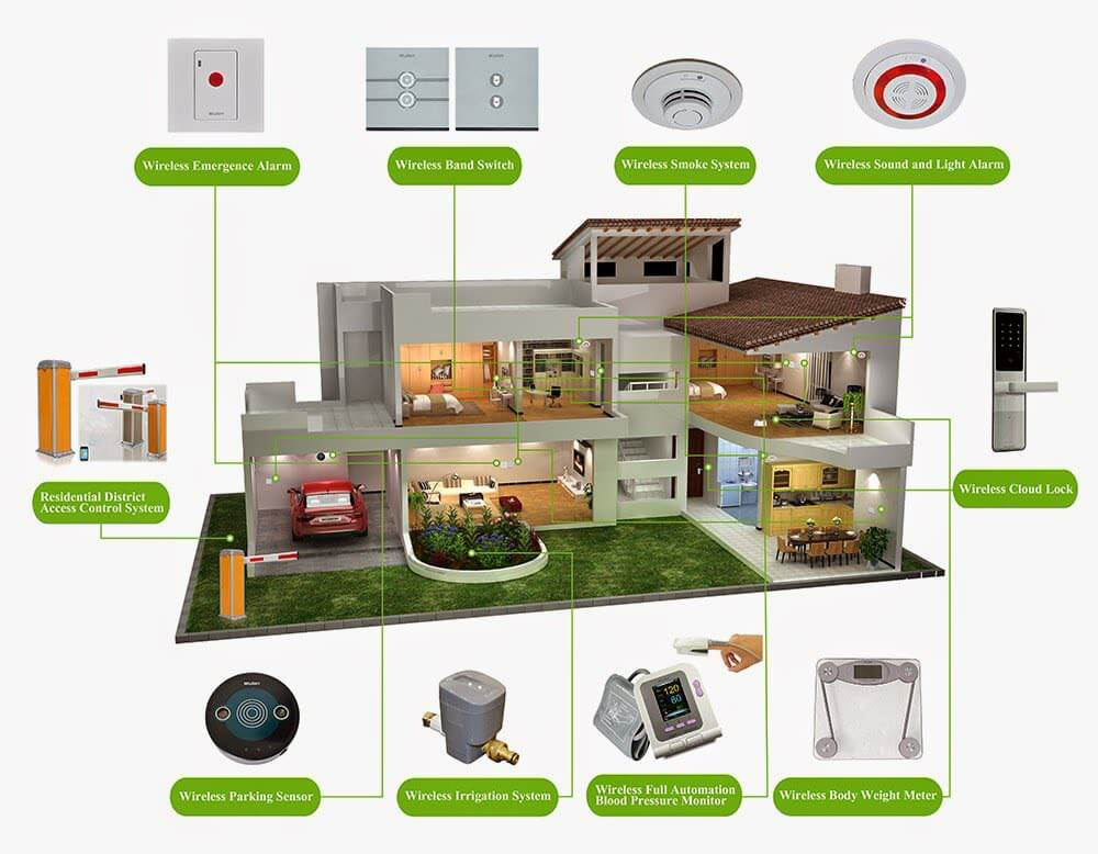 - Hệ thống nhà thông minh kiểm soát môi trường trong nhà 24/24 và cảnh báo liên tục đến ĐT của bạn, như nồng bụi, CO2, ẩm, tiếng ồn hoặc mở hệ thống tưới cây…. Toàn bộ các tính năng, kịch bản, thông tin, hình ảnh đều được cảnh báo, kiểm soát, mã hóa, điều khiển từ xa ở mọi lúc, mọi nơi trên ĐTDĐ, máy tính bảng, thậm chí bạn về gần tới nhà, 1 kịch bản theo ý muốn của bạn sẽ được thực hiện, nhờ sự nhận biết vị trí định vị chính ĐTDĐ của bạn.